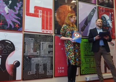 • Wyróżnienie honorowe dla Pana Damiana Kłaczkiewicza za plakat Rok Lema